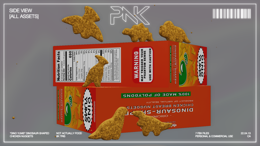 Ever wanted to take your favorite dinosaur-shaped chicken nuggets into the metaverse? Now you can! Made with no preservatives and no real chicken! Vegan and gluten-free.